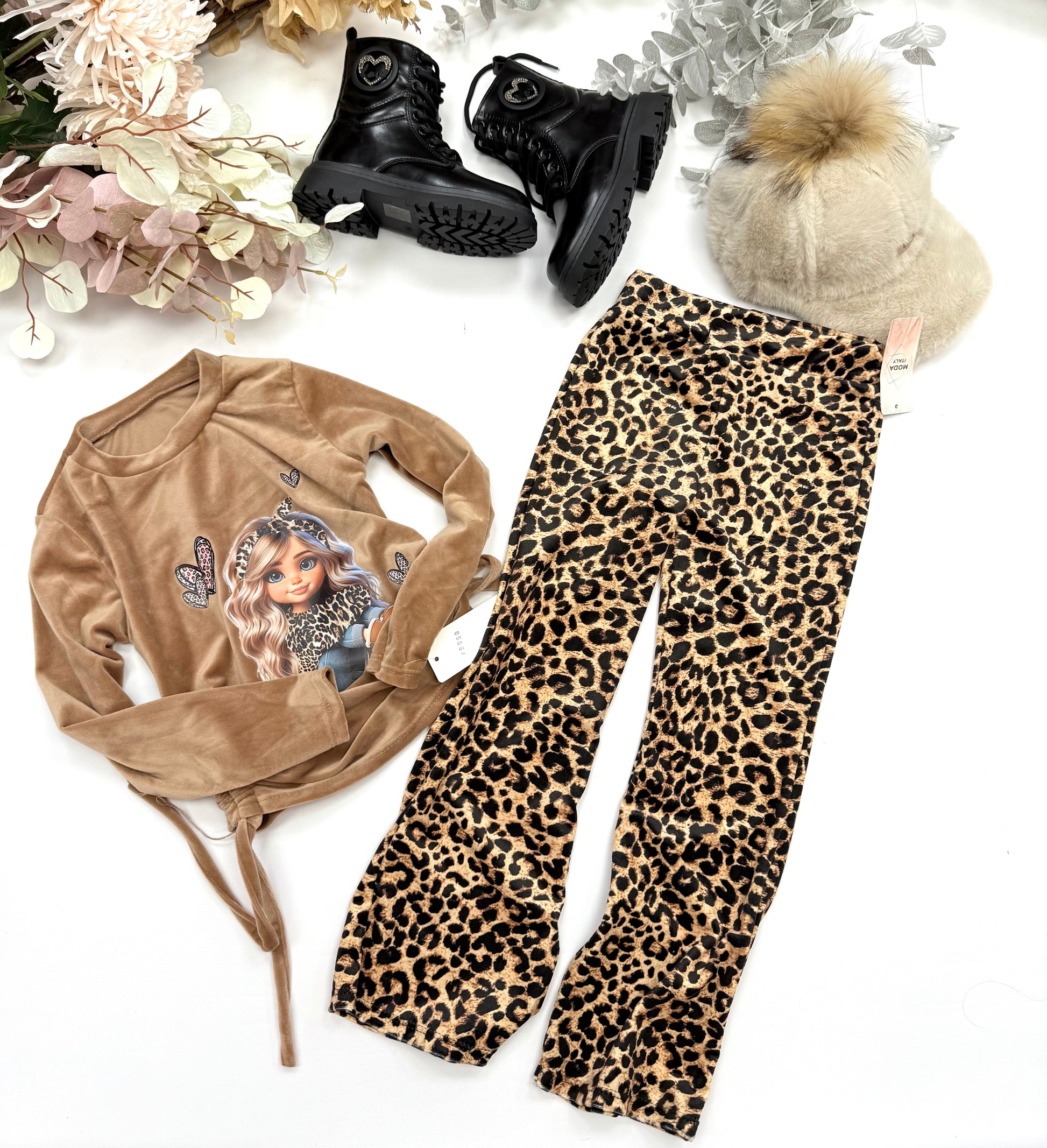 Velvet wild print ( top and pants )