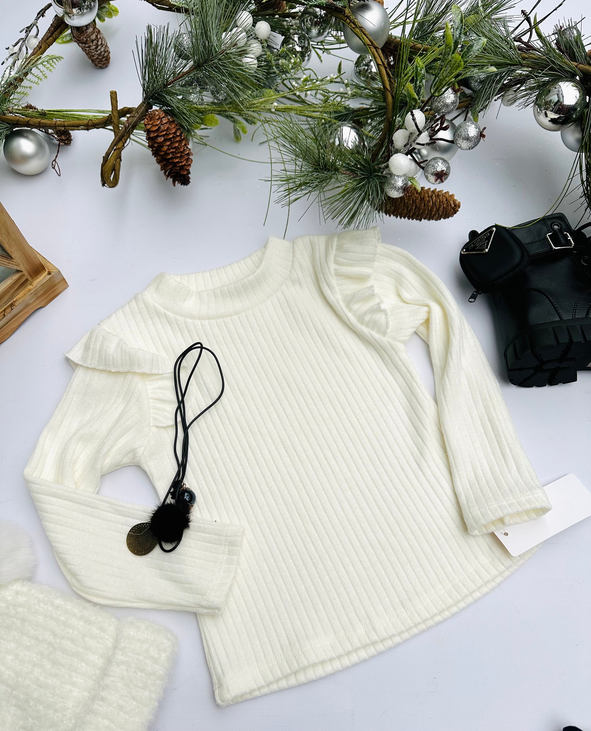 White sweatshirt with necklace